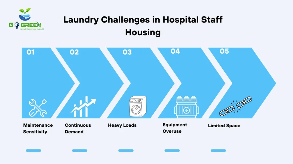 Hospital staff housing is very different from regular residential accommodation. Doctors, nurses, technicians, and support staff rely on consistent laundry access due to long shifts, frequent uniform changes, and hygiene standards that cannot be compromised.